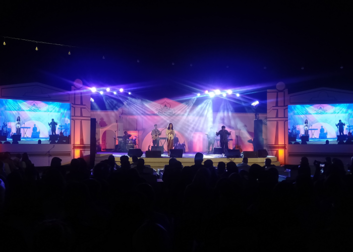Lantai Merah Jazz Collective menjadi performer ketiga yang menghanyutkan penonton dengan suguhan enam lagu bernuansa jazz ternama.