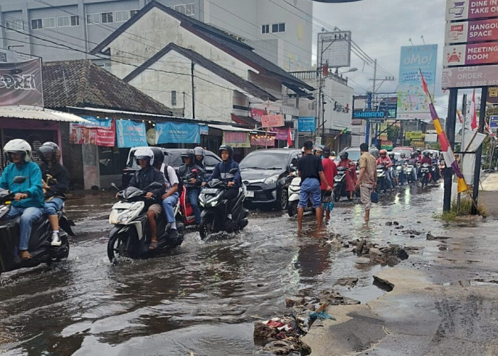 Drainase Tersumbat, Jalan Nyi Condro Lukito Mlati Banjir dan Macet Panjang