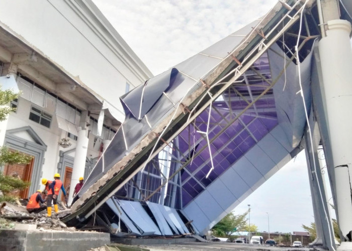 Hal itu, terungkap saat sejumlah pekerja membersihkan material bagian atap teras drop zone yang ambruk, Rabu (29/10/2025).