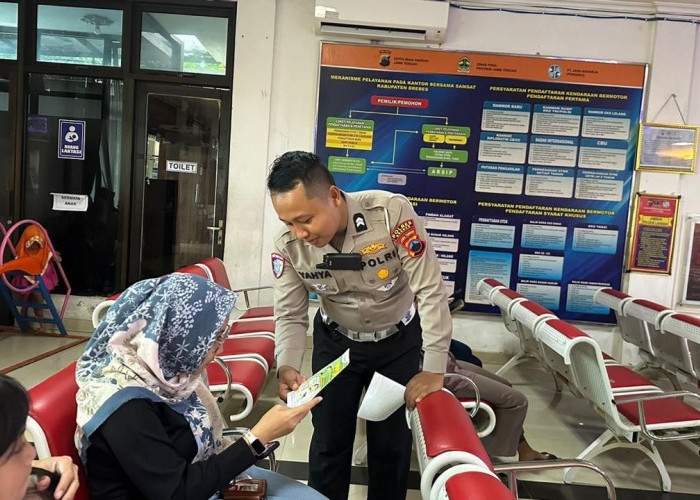 BREBES, diswayjogja.id - Sebagai upaya mewujudkan pelayanan humanis, Polisi Lalu Lintas Polres Brebes menggencarkan Program Menyapa bagi warga pemohon registrasi kendaraan di Kantor Samsat Brebes, Rabu (5/11).