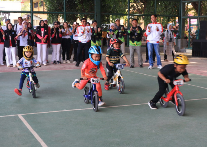 SIMBOLIS - Asisten Sekda Bagian Pemerintahan dan Kesra Pemkab Brebes melepas lomba pushbike secara simbolis pembukaan POPDA Brebes 2025.-Syamsul Falaq/ RATEG-