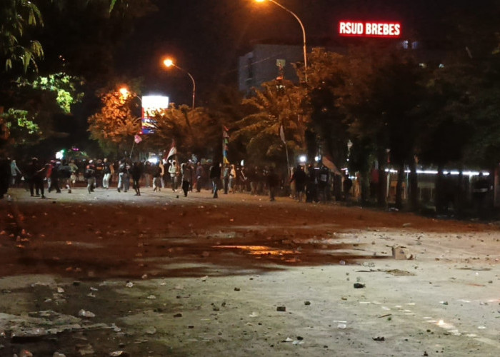 Sedangkan, Sementara di depan Gedung DPRD Brebes Jalan Gajah Mada, sekelompok massa masih melakukan pelemparan batu dan petasan.