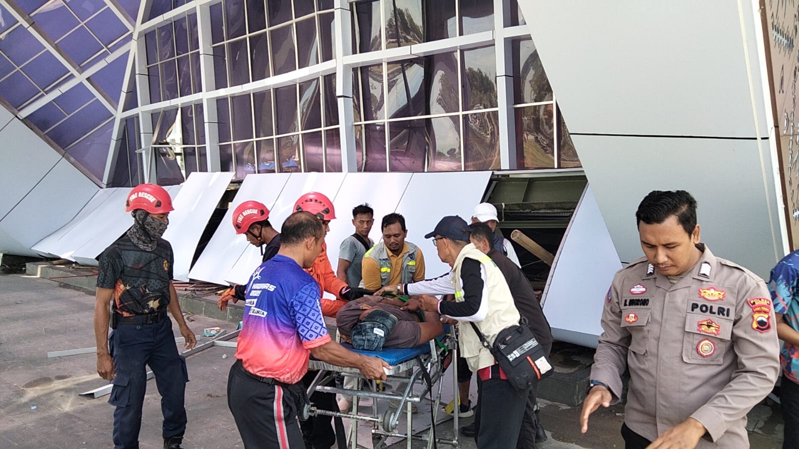 Akibat insiden tersebut, tiga orang pekerja yang sedang memperbaiki kebocoran atap teras mengalami luka-luka.