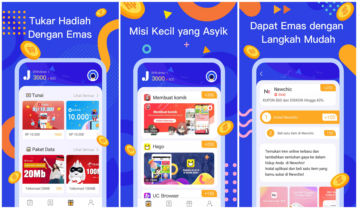 Aplikasi ini menawarkan kesempatan bagi penggunanya untuk mengumpulkan Emas, yaitu poin virtual yang bisa ditukarkan dengan hadiah menarik.