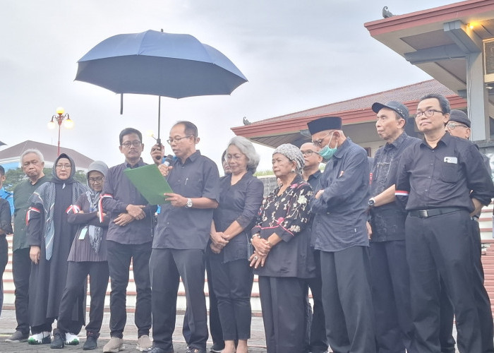SLEMAN, diswayjogja.id - Sejumlah civitas akademika Universitas Gadjah Mada (UGM) menyikapi arah transformasi dan dinamika kebijakan di bidang pendidikan dan kesehatan nasional, di mana mereka menyatakan empat poin 'Pemikiran Bulaksumur' di Lapangan Pancasila UGM, Rabu (7/5/2025) sore.