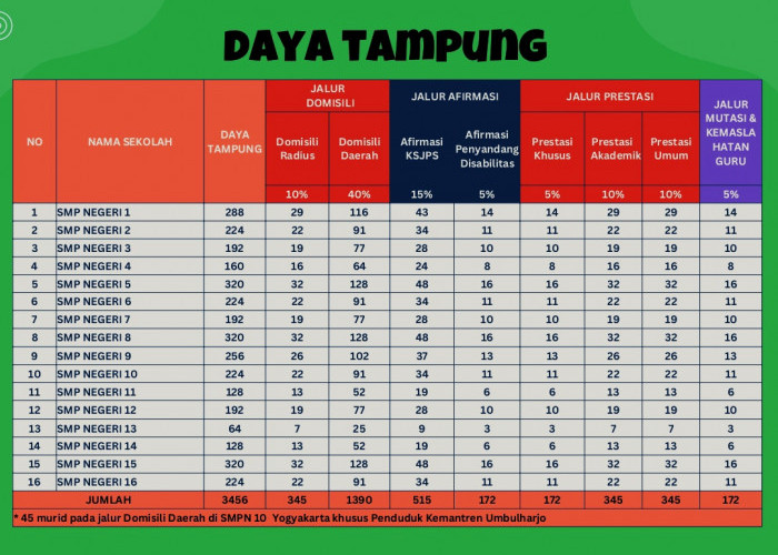 BACA JUGA : Hanya Ada Satu SMP, Pemkot Yogyakarta Buka SPMB 2025 Khusus Kemantren Umbulharjo