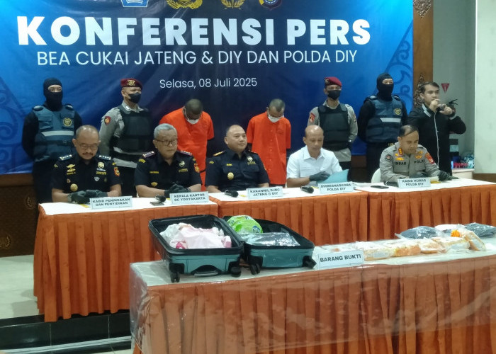 SLEMAN, diswayjogja.id - Dua pelaku pengerdar narkoba jenis sabu jaringan internasional, berhasil ditangkap oleh petugas Bea Cukai Yogyakarta dan Polda DIY, di Yogyakarta International Airport (YIA), Kulon Progo, DIY.