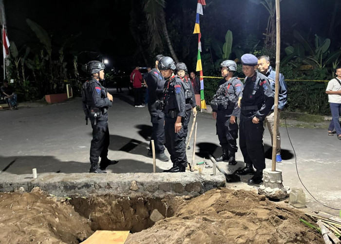 SLEMAN, diswayjogja.id - Peluru mortir raksasa yang ditemukan warga di Dusun Tanjung, Umbulmartani, Kapanewon Ngemplak, Kabupaten Sleman, akhirnya berhasil didisposal dengan prosedur keamanan yang sangat ketat.