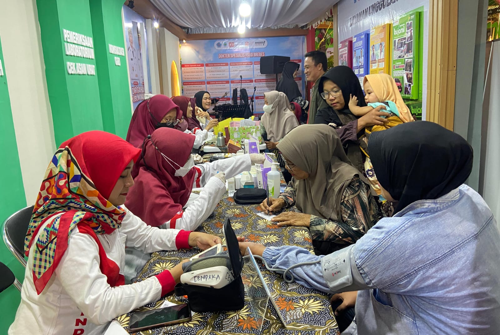 Stand pameran RSUD Brebes, juga dilengkapi fasilitas layanan kesehatan dasar yang lengkap dan gratis tanpa biaya. Seperti tensi darah, kadar gula darah, dan asam urat.