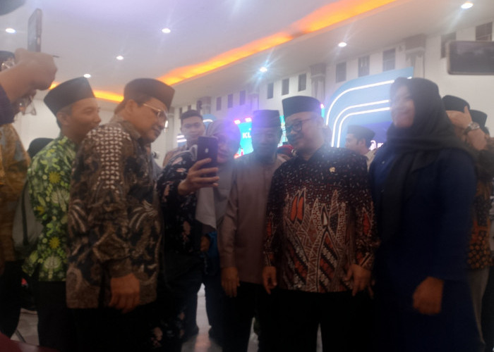 Menteri Pendidikan Dasar dan Menengah Abdul Mu’ti bersama peserta diskusi Angkringan Pendidikan di Muhammadiyah Jogja Expo (MJE) #4, JEC Bantul.--Foto: Kristiani Tandi Rani/diswayjogja.id