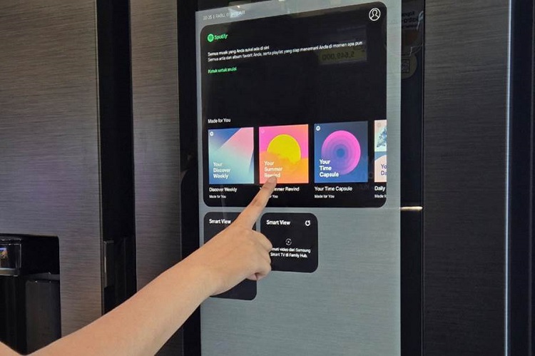 Salah satu inovasi unggulan adalah kulkas Bespoke AI RS90. Kulkas ini dilengkapi dengan fitur cerdas yang mengubahnya menjadi “asisten dapur” pribadi. Dengan layar AI Home 9 inci dan Family Hub 21,5 inci, kulkas ini memungkinkan Anda memantau dan mengelola persediaan makanan di rumah dengan sangat mudah. Melalui aplikasi SmartThings, Anda bisa mengecek daftar makanan yang tersimpan di dalam kulkas bahkan saat sedang berada di luar rumah. Fitur ini membantu memastikan bahan makanan tetap segar dan mengurangi pemborosan.