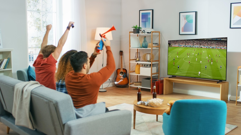 Keluarga sedang menonton film favorit dengan menggunakan TV SHARP AQUOS 4K HN7000--sharp