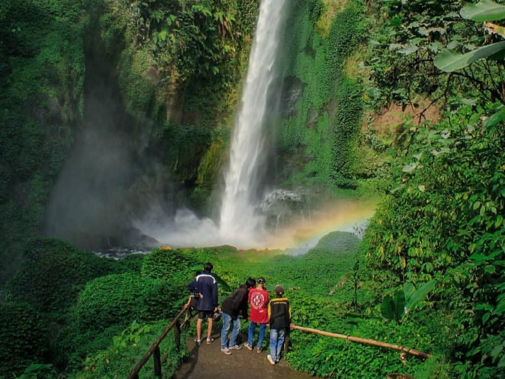 Wisata terbaru 2024 Air Terjun ini sering membiaskan warna pelangi. Warna tersebut berasal dari sinar matahari yang menyinari air terjun, sehingga memantulkan bias warna pelangi. Air terjun ini sangat tinggi danmemiliki arus yang kencang, sehingga kamu tidak diperbolehkan untuk bermain di sekitar loaksi air terjun.